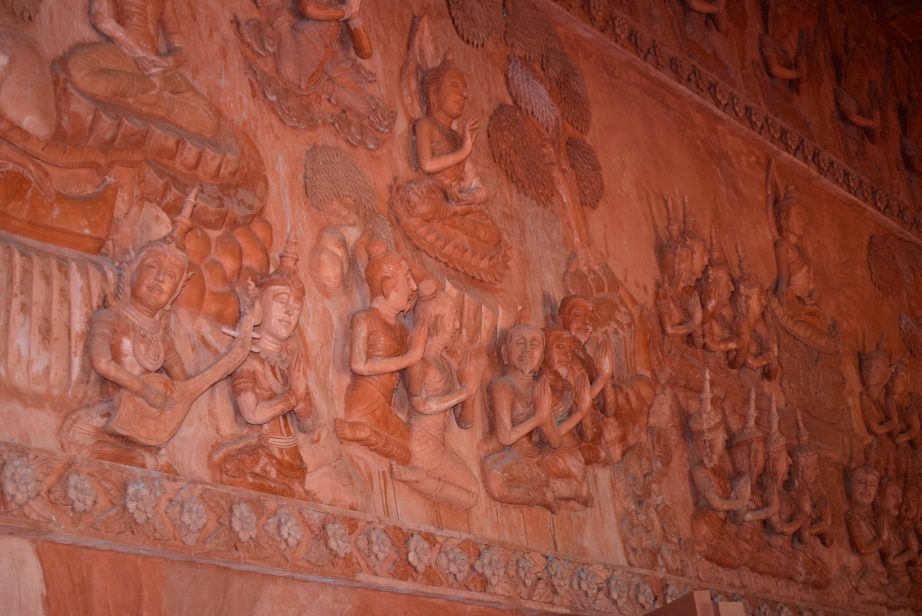 Этот Храм примечателен тем, что весь он выполнен в одном цвете, больше нигде в Тайланде мы не встречали подобного терракотового Храма, и на Самуи вы такого второго точно не найдете) Здание само по себе выглядит довольно шикарно и фотогенично, хотя выполнено из самого дешевого материала. На его стенах повсюду видны барельефы и лепнина, причем сделано все настолько тонко, что можно увидеть очертания лиц людей, их мимику, украшения и одежду. Интересный факт, что к строительству Храма имеют прямое отношение туристы, в пожертвованиях на строительство большая доля вложений принадлежит отдыхающим, это место как бы является символом сплоченности местных жителей и приезжих.