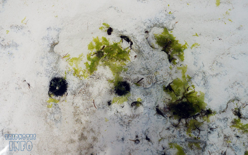 Морские ежи — очень болючая неприятность, если вы на них наступите в воде. А их в акватории Занзибара много. Они буквально на каждом шагу. Поэтому обязательно надевайте плавательные тапочки с хорошей подошвой.