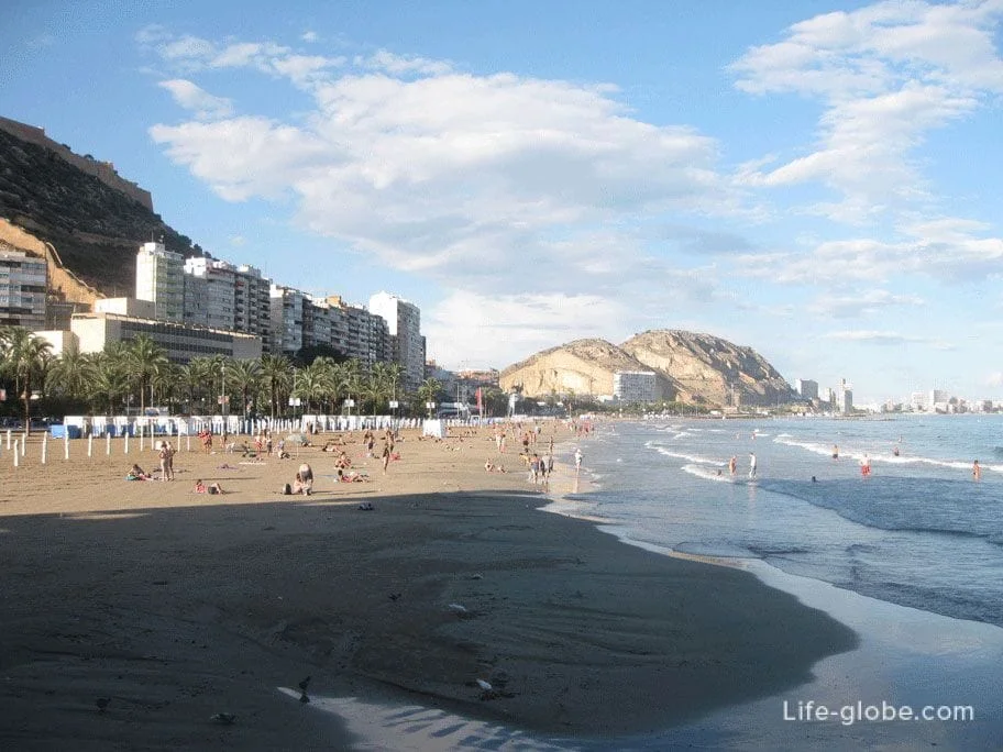 находится в центре города, поэтому к ней удобно добираться из Аликанте. Она хороша для отдыха с детьми, поскольку оборудована игровыми зонами. На взморье много пальм, в тени которых отдыхающие прячутся от солнца.