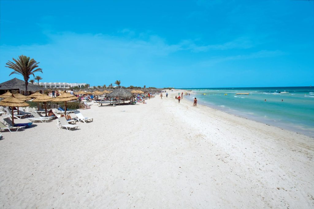 Пляжи туристической местности Джербы назвать полностью общественными тоже нельзя, на пляжах местных жителей практически нет, за исключением торговцев и работников. Всё же основная масса отелей расположены не в шаговой доступности от населенных пунктов.