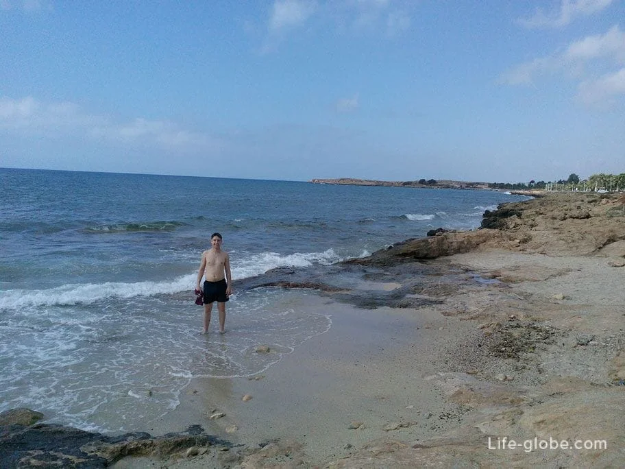 От отеля до пляжа Нисси Бич далековато, пешком минут 40. Можно добраться на автобусе, проезд стоит 1,5 евро. Или на микроавтобусе, такси, рассчитанном на 8 посадочных мест. Микроавтобусы стоят прямо напротив остановки. Водители сами подходят к людям на остановке и спрашивают кому на пляж, когда набирается полная маршрутка, пассажиров без остановок отвозят до пляжа. Проезд в такси до пляжа стоит столько же сколько проезд в общественном городском транспорте – € 1,5.