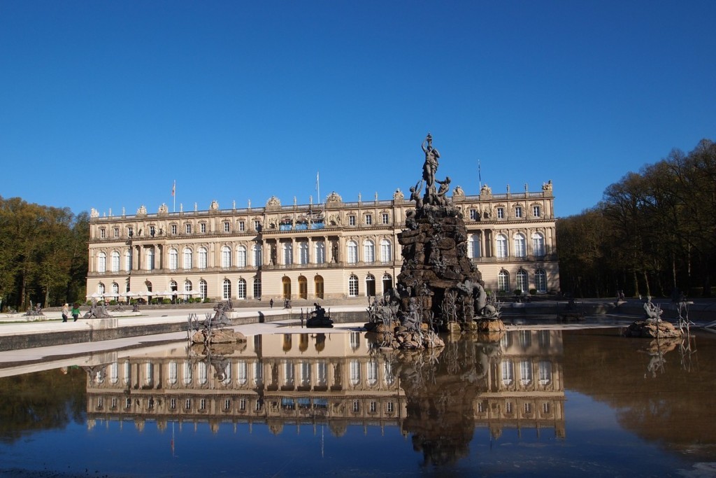 Король Людвиг 2 Баварский купил остров Херрен в 1873 г., чтобы устроить здесь новый Версаль. Во время поездок в Париж он изучил архитектуру эпохи Людовика 14, которому подражал. Но полностью воплотить свой план король не смог, поэтому дворец остался не до конца обставленным. Он прожил во дворце всего несколько дней в 1885 г. Всего через 2 года после его смерти сюда стали пускать туристов.