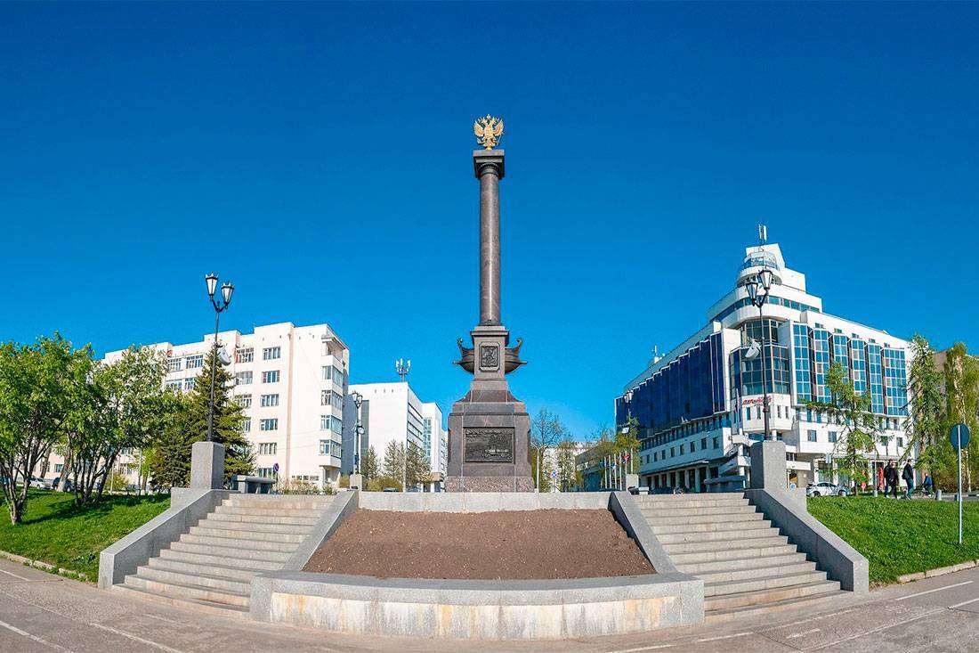 Является одновременно точкой отсчета и арт-объектом. Расположен на пересечении улицы Воскресенская и Троицкого проспекта, рядом с Главпочтамтом. Начиная с XVII века, в России традиционно у зданий Главпочтамта устанавливали верстовые столбы с указанием расстояния до других городов. Установлен символичный знак в 1999 году. Выполнен он архитектором и художником Игорем Скрипкиным.