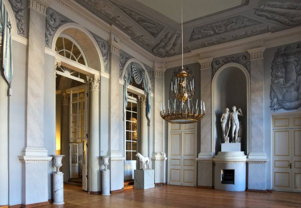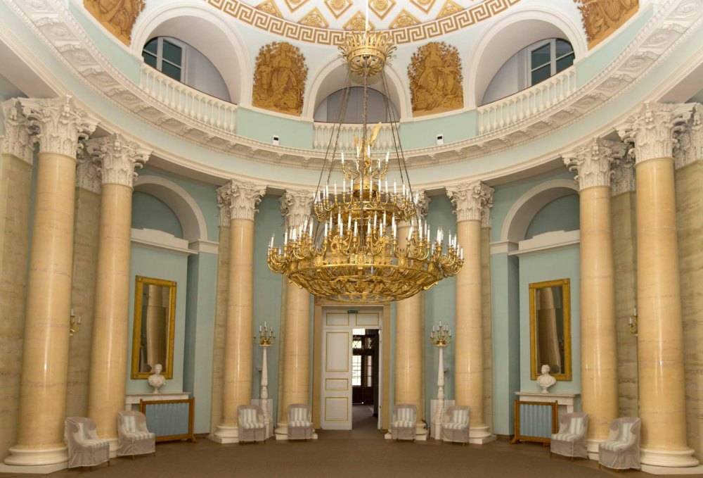 В Императорском зале – мраморные бюсты Екатерины II и Петра I, которых почитали хозяева дворца.