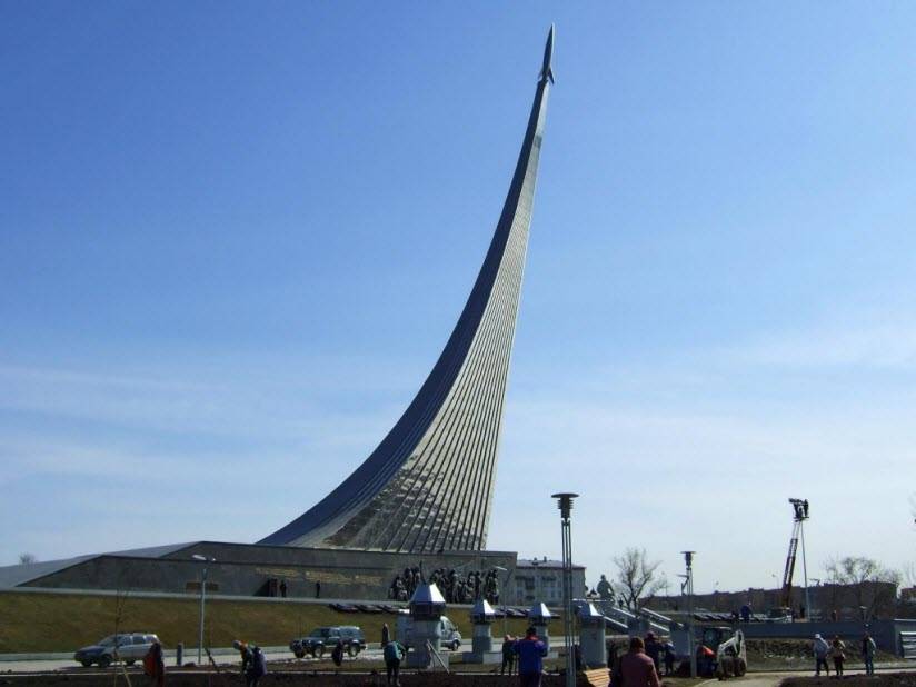 Через семь лет после успешного запуска первого искусственного спутника Земли в Останкино был торжественно открыт грандиозный монумент, посвященный покорителям космических просторов. Огромную стелу, символизирующую шлейф газов, вырывающихся из сопел космических аппаратов, венчает ракета. Жесткость 107-метровой конструкции обеспечивает прочный металлический каркас. Сверху он покрыт листами полированного титана.