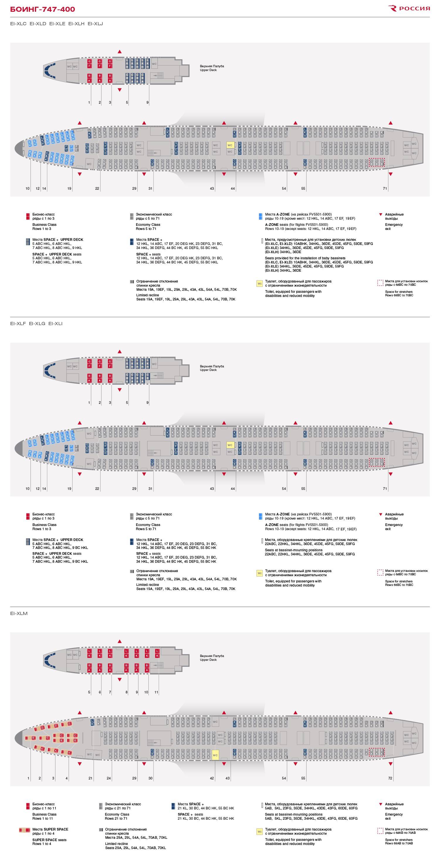 Любой лайнер имеет первый, второй и т.д. ряды. В двух-, трёхклассных компоновках здесь отводятся места для бизнес- или премиум-пользователей. В одноклассных эти места редко отличаются. Это верно почти для всех компаний. У ак Россия эти места можно тоже назвать премиум. Количество сидений в ряду, стандартное для эконома — по три у каждого борта, а вот привилегий больше. Среди них — больший выбор в еде, и в случае нештатной ситуации возможность покинуть самолёт одними из первых Это места в первых 4 рядах, доплачивать за которые не нужно.