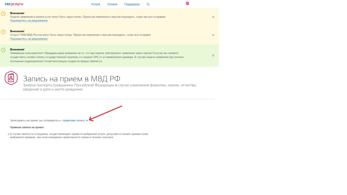 Перед осуществлением записи внимательно ознакомьтесь с правилами записи. Для этого нажмите на стрелочку рядом со строкой.