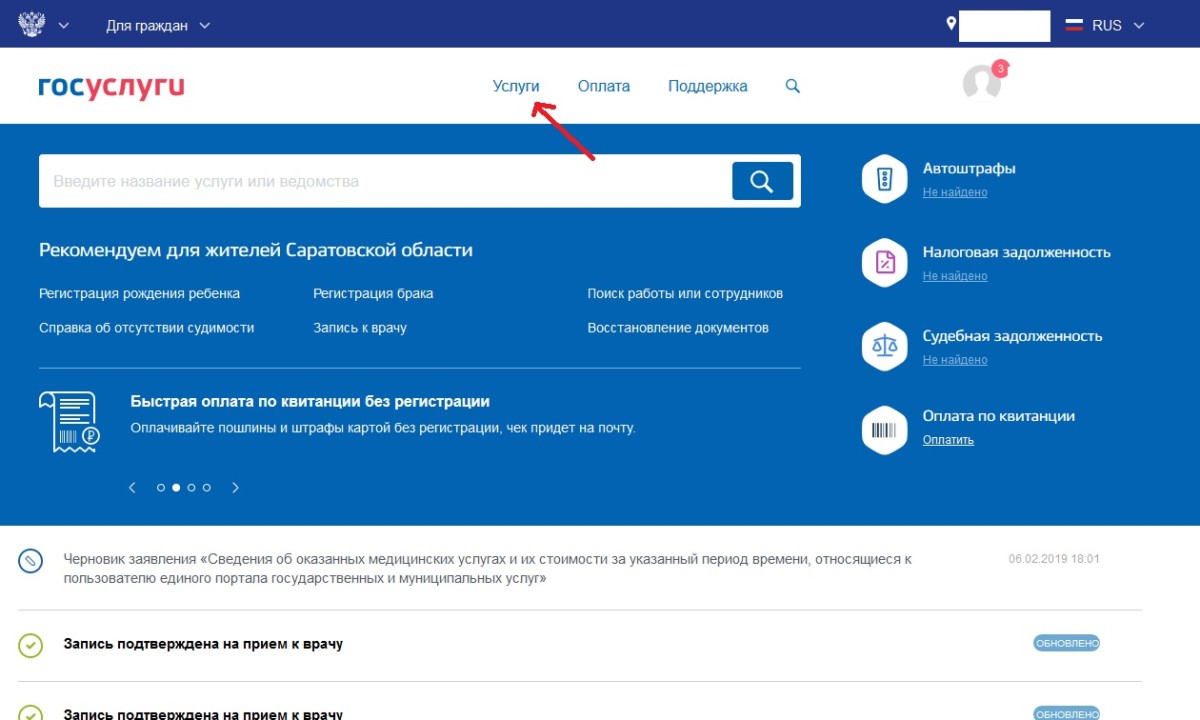 - Зайти на портал Государственных услуг через сайт https://www.gosuslugi.ru или через официальное приложение на смартфоне.