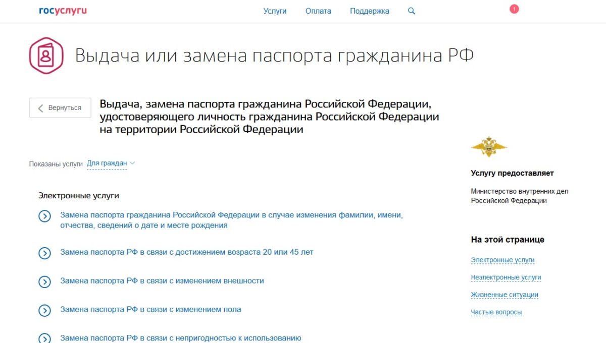Записаться в паспортный стол через госуслуги можно для получения следующих услуг: