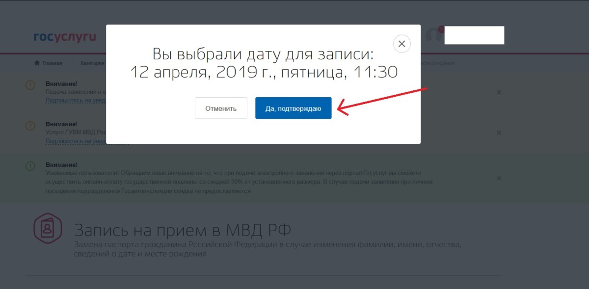 В течение некоторого времени в личном кабинете появится информация о подтверждении записи ведомством. В уведомлении также содержится ПИН-код, требуемый для получения талона на месте.