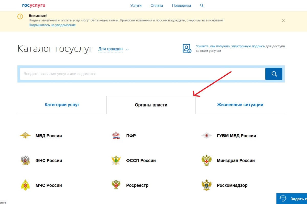 Шаг 4. В каталоге услуг выберите пункт «Органы власти».