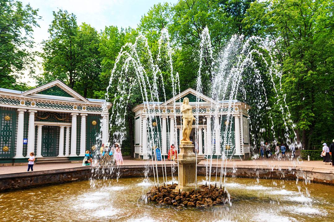- Фонтаны «Менажерные», «Тритоны-колокола», «Чаши», «Адам» и «Ева», «Китовый», «Львиный каскад», Большой каскад, фонтаны мраморных скамей «Нимфа» и «Данаида» и каскад «Золотая гора» — с 10:00 до 19:45.