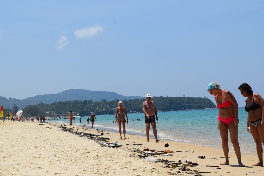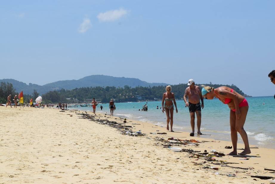 Так же из за больших волн сюда приносит весь мусор из открытого моря. Прогуливаясь по пляжу с утра, можно увидеть сколько хлама прибивает к берегу. Конечно тайцы все это потом чистят и приводят Карон в презентабельный вид. Если вы думаете, что прогуливающие по пляжу туристы удивляются, смотря на эту свалку — вы ошибаетесь. Здесь к этому уже привыкли — они просто хотят поглазеть на дохлых рыб и кальмаров.