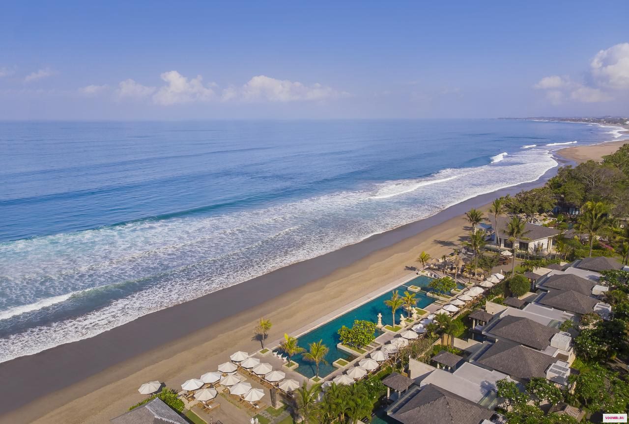 Samabe Bali Suites & Villas (стоимость от 363 $). Этот отель я бы отнесла к отелям для молодоженов. На большой территории, где перемещаешься на маленьких машинках багги, построены 39 сьют номеров. 42 виллы, 6 ресторанов, детский клуб (2-8 лет), салон красоты, бассейн, бизнес-центр, тренажерный зал. Пространство достаточно приятное, находится на берегу океана, есть спуск.