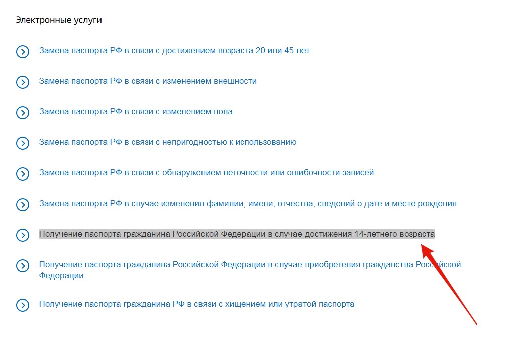 - Перейти к услуге по получению документа при достижении возраста в 14 лет.