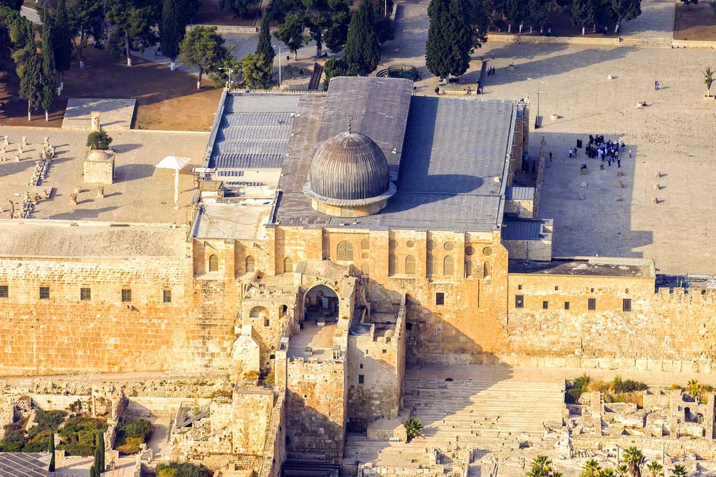 На месте Первого и Второго храмов в 687—691 гг. мусульмане воздвигли мечеть Куббат ас-Сахра («Купол Скалы»), чтобы подчеркнуть свою власть и святость над евреями. По преданию, Куполом отмечено то место скалы, с которого пророк Мухаммед вознесся на небеса. Верхом на крылатом коне, в сопровождении ангелов он совершил ночное переселение из Мекки в Иерусалим, причём столь быстро, что вода не успела вылиться из опрокинутой чаши. Также по иудейской традиции, именно с этой скалы Господь начал Сотворение мира. Камень Основания, в середине которого возвышается небольшая скала, считается священным и обнесён позолоченной решёткой, чтобы к нему никто не прикасался. Помимо сакрального значения, Купол Скалы является одним из величайших образцов ранней исламской архитектуры. Куббат ас-Сахру венчает огромный золотой купол с полумесяцем на вершине. Стены, своды и арки храма декорированы великолепными мозаиками с растительными, геометрическими орнаментами и надписями, выполненными арабской вязью. В мечети хранятся священные реликвии — отпечаток стопы и три волоска из бороды пророка Мухаммеда.