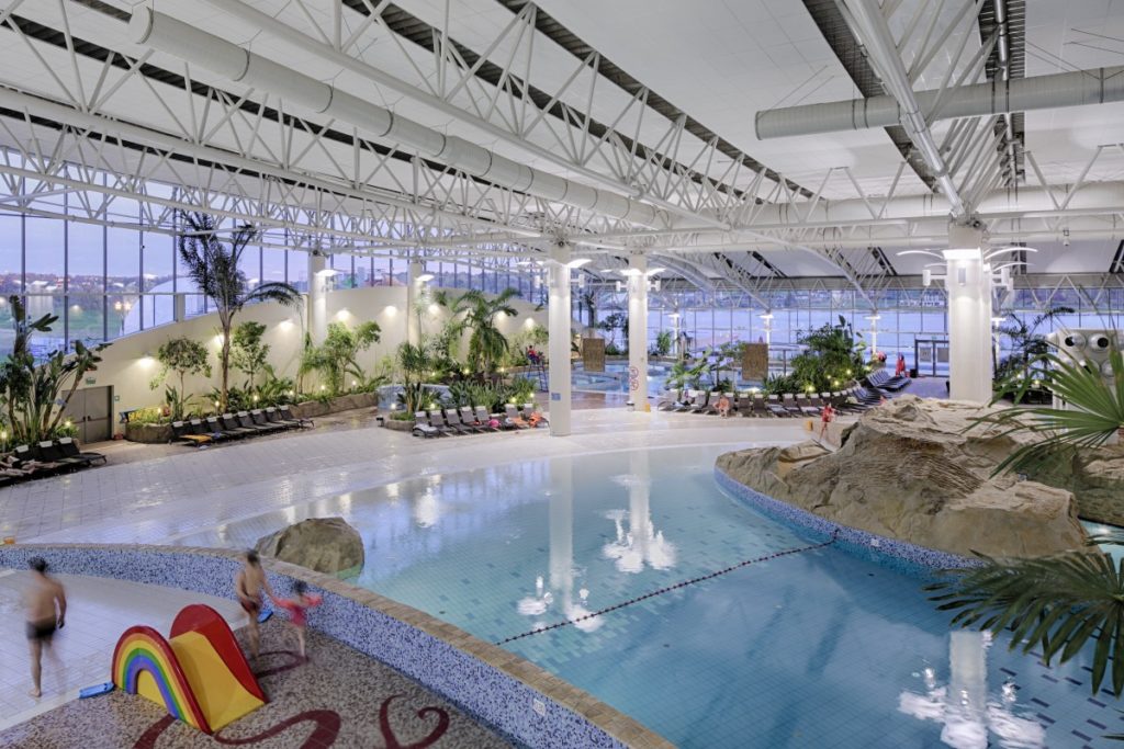 Комплекс порадует множеством различных бассейнов и горок. Для особо уставших предусмотрены сауны, а также комплекс Spa&Wellness.