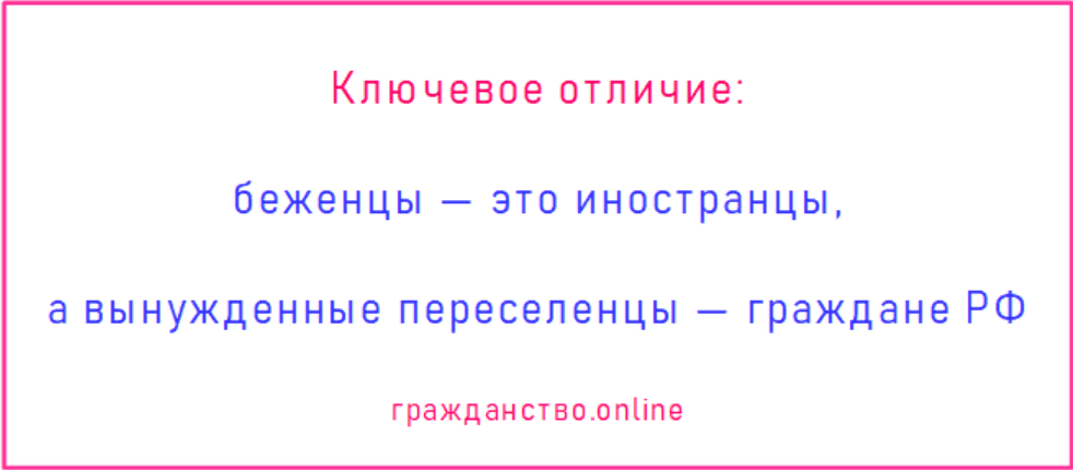 Отличия преимущественно касаются разницы в гражданстве, но беженцы не смогут получить помощь в строительстве или приобретении собственного жилья. Кроме перечисленного, они получают часть прав, аналогичных тем, что имеют граждане РФ (на работу, общественную деятельность, получение образования, медицинских услуг и др.), и возможность с минимальными усилиями получить гражданство России или право на постоянное проживание.