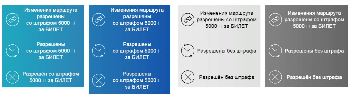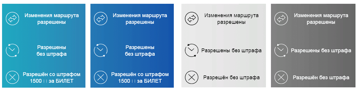 Условия тарифов «Эконом», «Премиум эконом», «Комфорт» и «Бизнес» до окончания регистрации на рейс