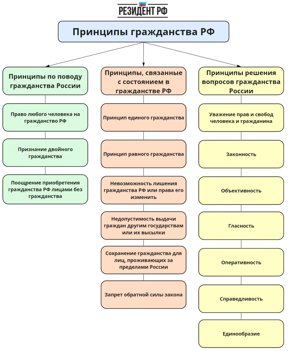 Все основные принципы гражданства РФ содержаться в законе №62-ФЗ «О гражданстве РФ» от 31.05.2002 года. Документ содержит следующие принципы: