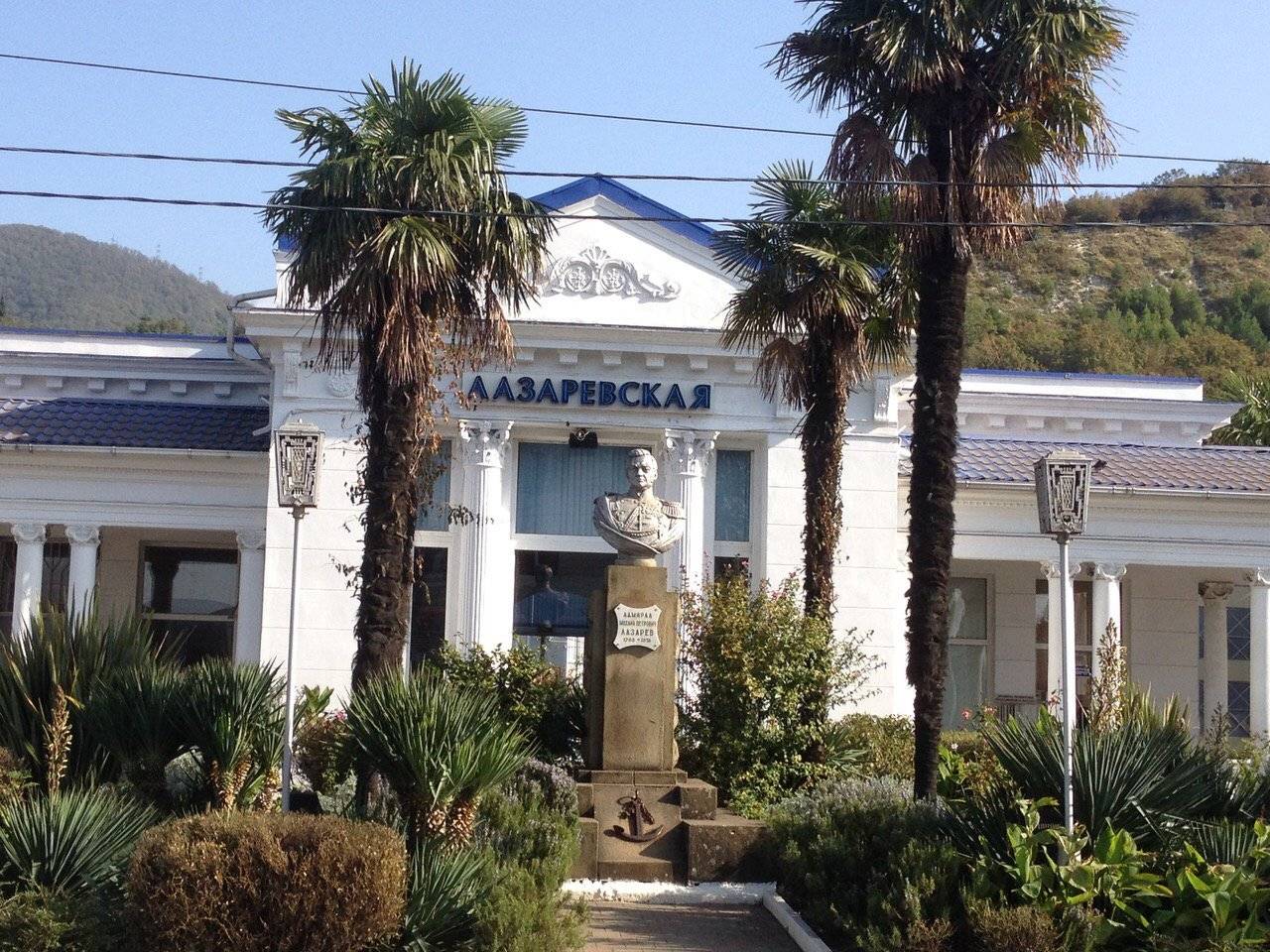 Основанный в 1839 году, поселок был назван в честь Михаила Петровича Лазарева, адмирала, флотоводца, основавшего в этих краях первые военно-морские базы. Бюст М.П. Лазареву установлен перед станцией железнодорожного вокзала.