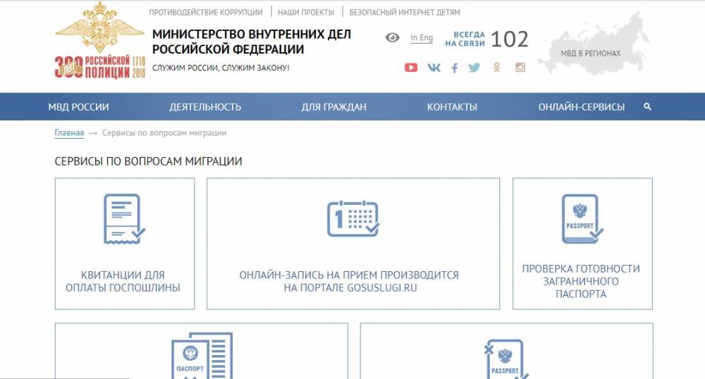 - Вы увидите страницу, содержащую 7 информационных сервисов, которые предоставляет Управление по вопросам миграции.