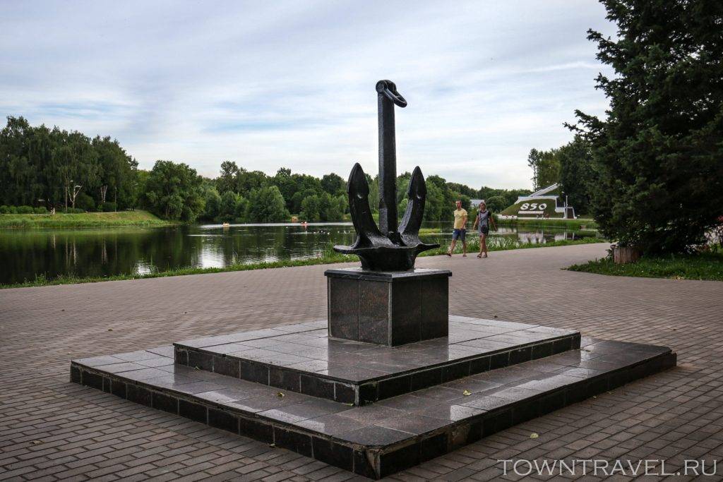В центре набережной установлен памятник великолучанам-морякам в форме морского якоря.