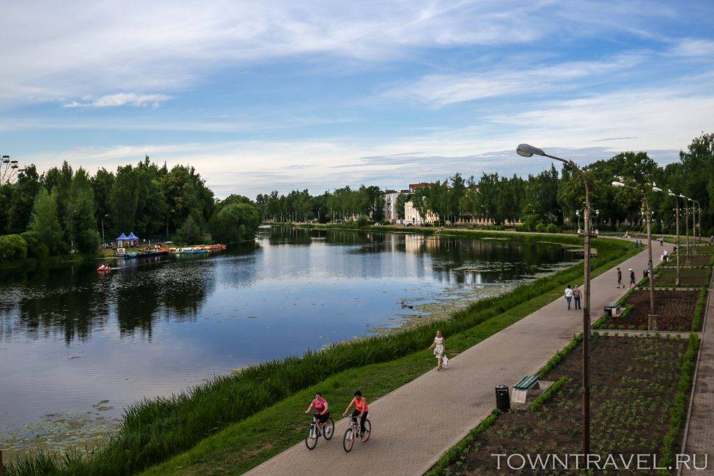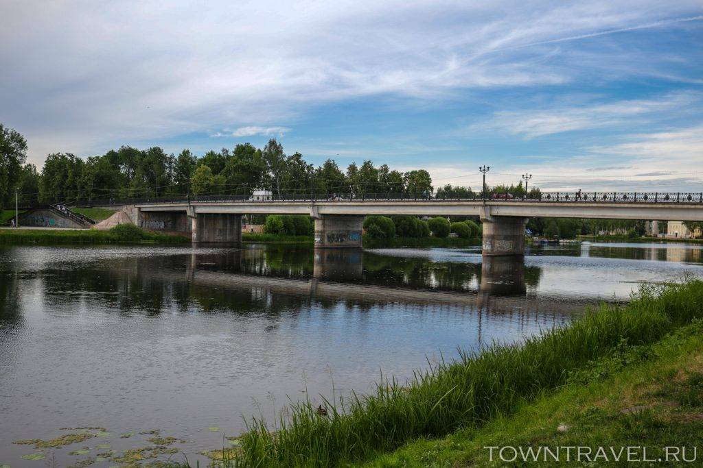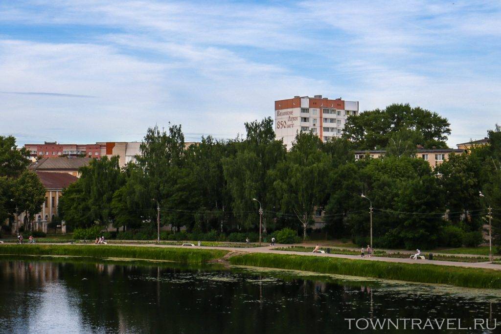 Осмотрев площадь Ленина, выходим на набережную реки Ловать. Исторически Великие Луки равномерно разрослись по обе стороны относительно реки, поэтому мы сначала прогуляемся по правому берегу, а затем по мосту перейдем на левый берег.