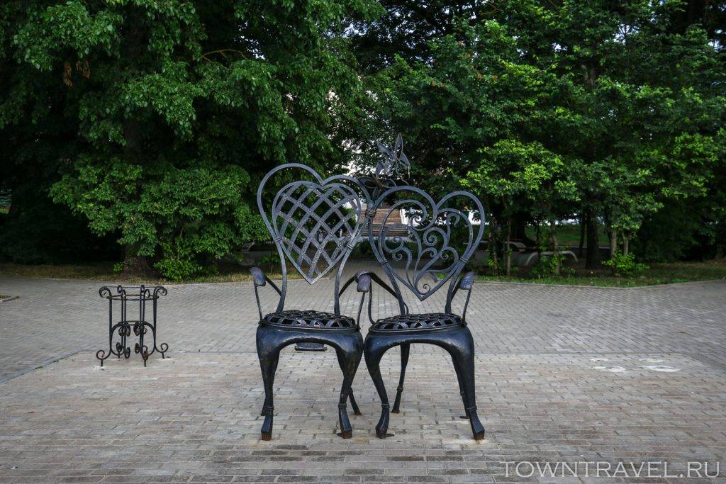 Рядом с мостом какие-то глупые чугунные стулья для совместных фото.