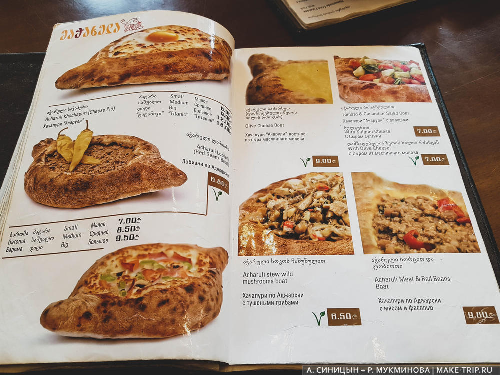 В Тбилиси рекомендуем сходить, например в Захар Захарыч. Вот они на Трипэдвайзоре, там же есть и фото меню с ценами для примера. Также рекомендуем в Тбилиси ресторан Маспиндзело. Просто несколько примеров, чтобы вы могли ориентироваться по ценам.