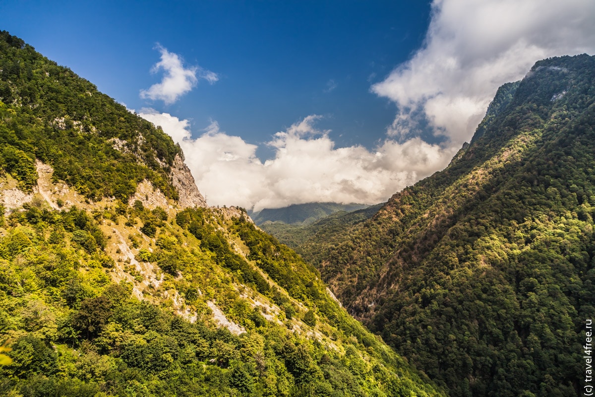 Дорога очень красивая, по пути надо заехать на Ингурскую ГЭС. После отворотки на ГЭС, необходимо чуть проехать, оставить машину на парковке, а далее немного прогуляться пешком.