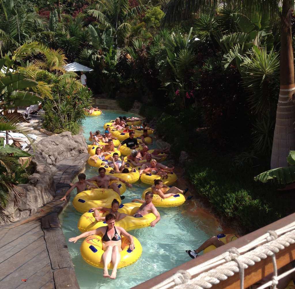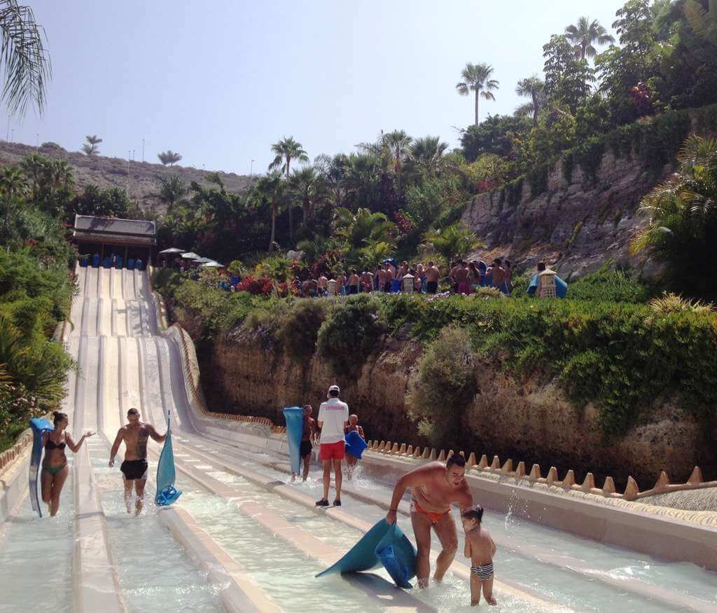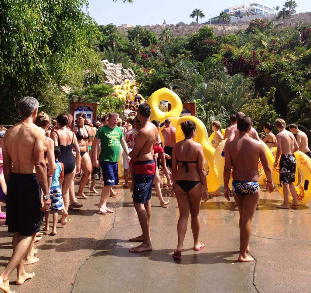 Летом в парке очень, ОЧЕНЬ много народа. Июль–август — пиковые месяцы для всего острова: у детей каникулы, и родители со всего мира стремятся использовать отпуска. В эти же месяцы на Тенерифе жарче всего, а потому подавляющее большинство отдыхающих желает попасть в аквапарк.
