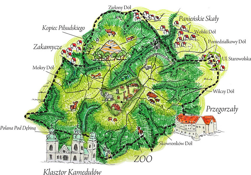 Если вы не хотите плутать, идя через Вольский лес от кургана Костюшки, можете приехать сюда на автобусе. Автобус 134 маршрута доставит вас прямо к зоопарку. Когда Вы въезжаете на автобусе в лес, впечатление такое, что находитесь где-то в горах, и дорога серпантинной лентой уводит вас все выше и выше…
