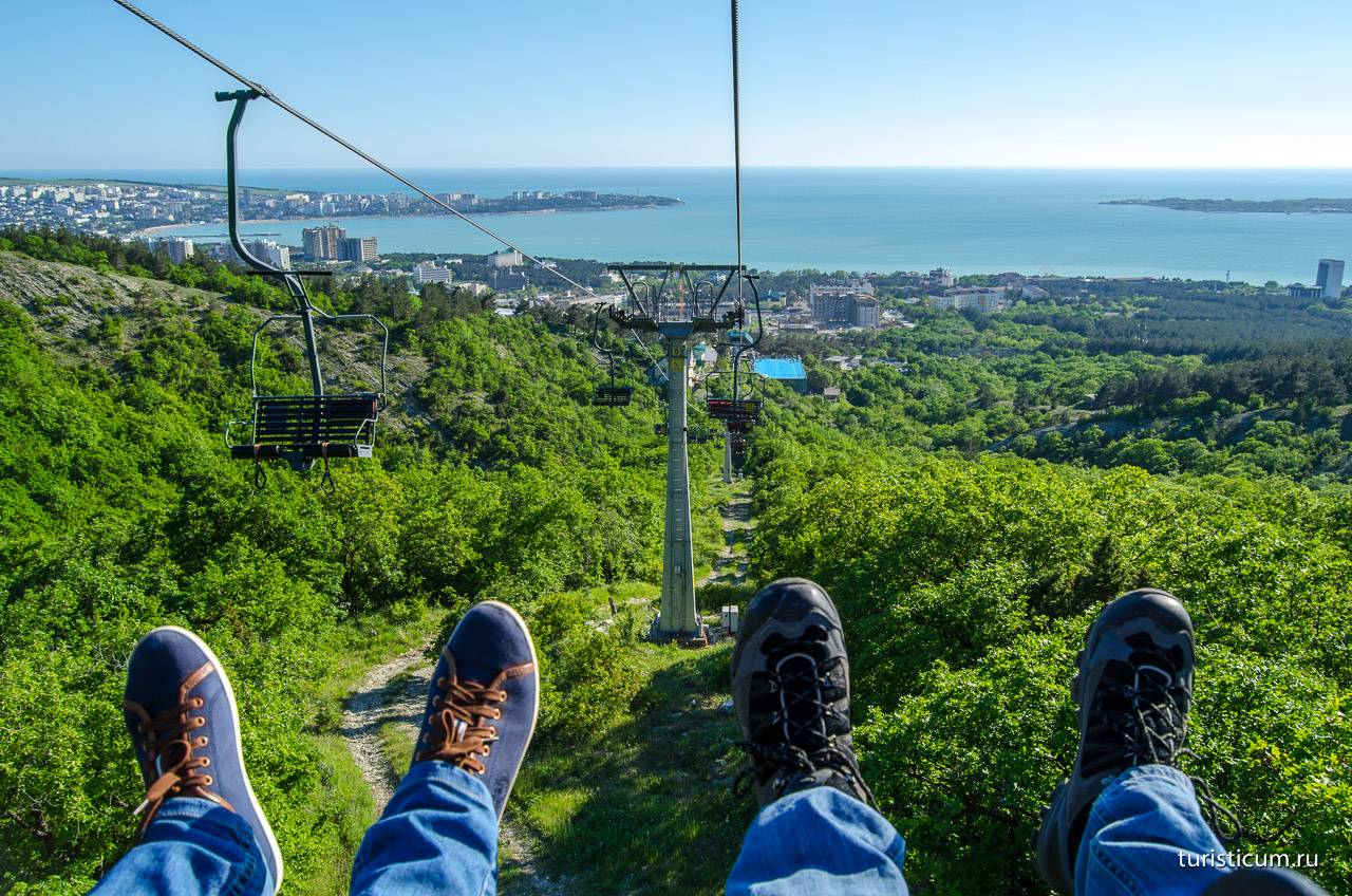 - В Геленджике обязательно стоит подняться на вершину Маркхотского хребта, откуда открываются прекрасные виды. Можно самостоятельно осилить подъем в 400 метров или воспользоваться канатной дорогой. До вершины хребта проложены две кресельные канатные дороги, расположенные друг от друга на расстоянии более километра. Принадлежат канатные дороги в Геленджике парку «Олимп» и «Сафари-парку», поэтому в стоимость билета включено их посещение.