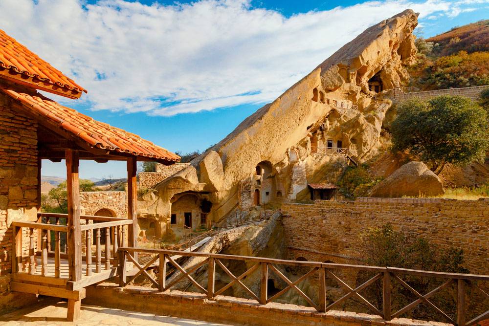 Это целый комплекс монастырей, часть которых относятся к пещерному типу. Монастырь находится на самой границе между Грузией и Азербайджаном. Обойти весь комплекс Давид-Гарейджийского монастыря сложно, поэтому большая часть путешественников ограничиваются посещением Лавры Давида и монастыря Тетри-Удабно. Здесь же находится могила Святого Давида, а вот священный камень, принесённый им из Иерусалима, хранится в столице. В пещерных храмах монастыря Тетри-Удабно сохранились древние фрески. Самая запоминающаяся из них это фреска «Тайная вечеря» XI века. Многие фрески пострадали от набегов мусульман, уничтожавших лики, и действий советских военных, которые оставили после себя надписи.