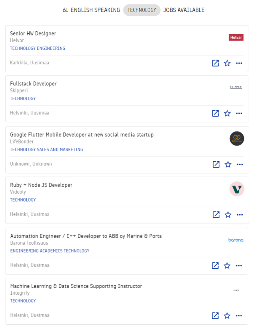 Городские рекрутинговые порталы: такие как проект Jobs in Helsinki ― агрегатор преимущественно англоязычных вакансий в столичном регионе.