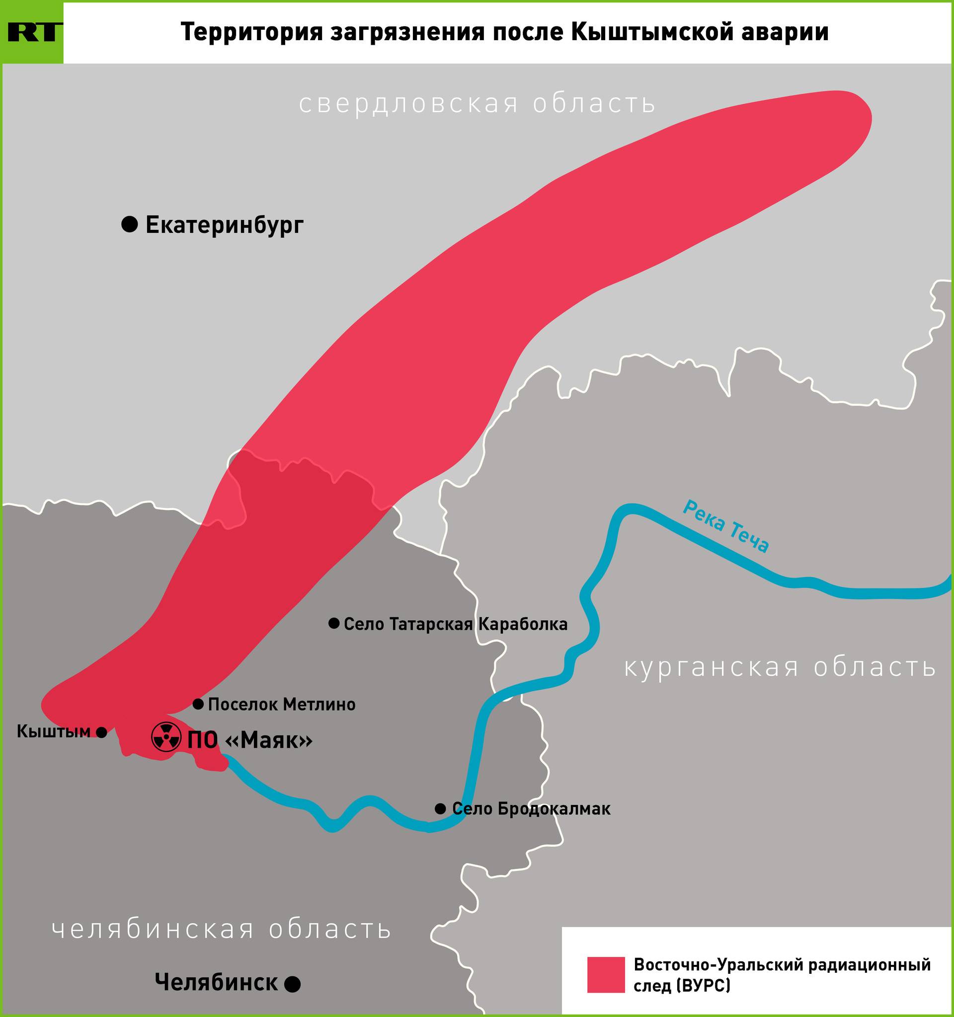 - Территория загрязнения в результате кыштымской аварии 1957 года
