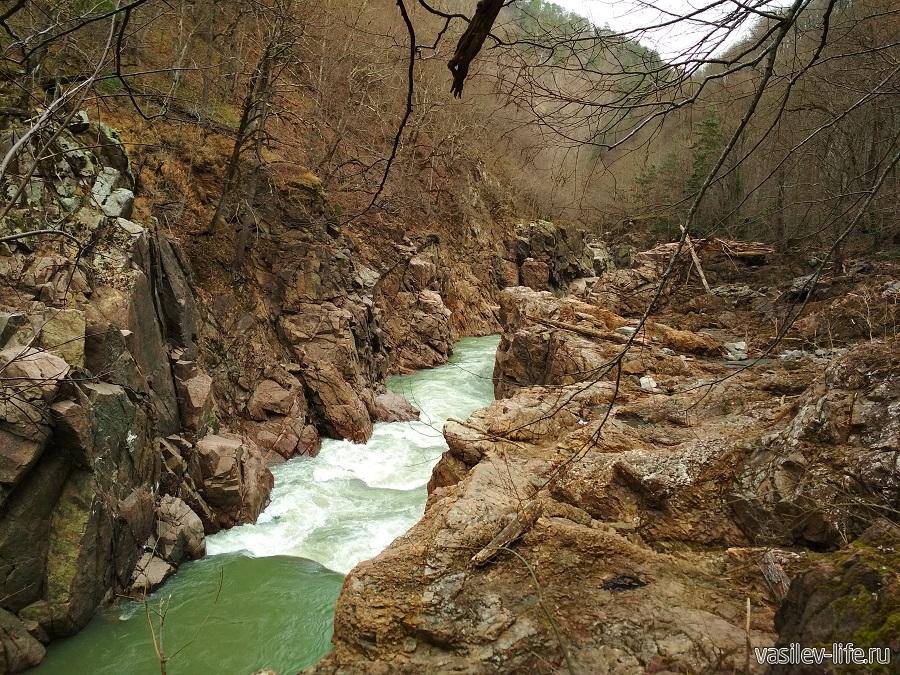 Необычайной красотой обладает ущелье реки Мешоко. Водопад, расположенный среди высоких скал и горных хребтов, образует собой дивный каньон. Местные называют Мешоко “кусочком Северной Америки” в Адыгее.