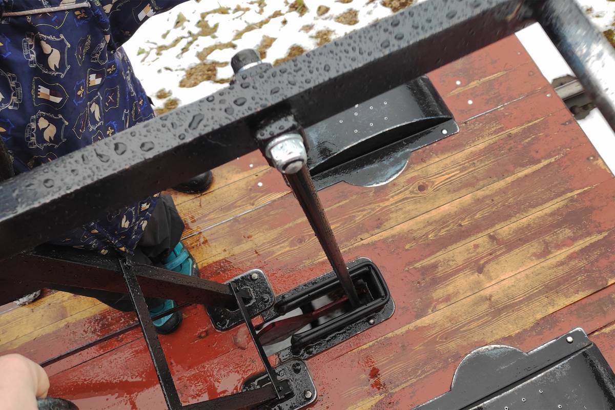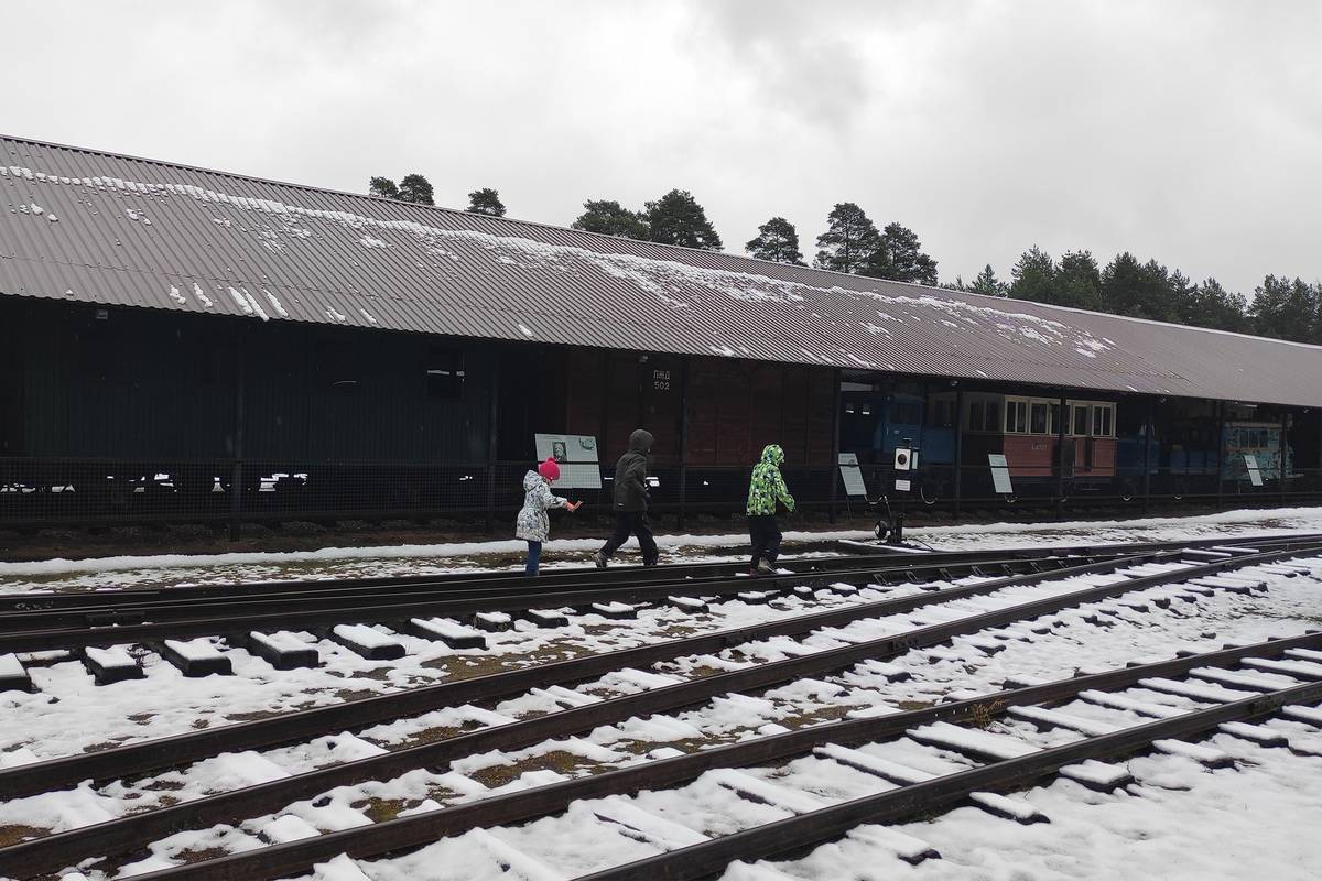 На дрезину пустят группу из шести человек, из них хотя бы двое должны быть взрослыми. Наша компания как раз уместилась, хотя я сомневалась, что все мы удержимся на мокрой платформе. Дрезиной управляли старшие сыновья подруги, вдвоем они отлично справились. Несмотря на ветер и мокрый снег в лицо, эти десять минут катания туда-обратно понравились всем.