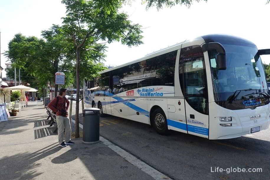 Узнать, как доехать до нужного города, посмотреть подробный маршрут и расписание автобусов можно на сайте, посвященном Сан-Марино, www.aass.sm. Сан-Марино соединен автобусным сообщением с Римини.