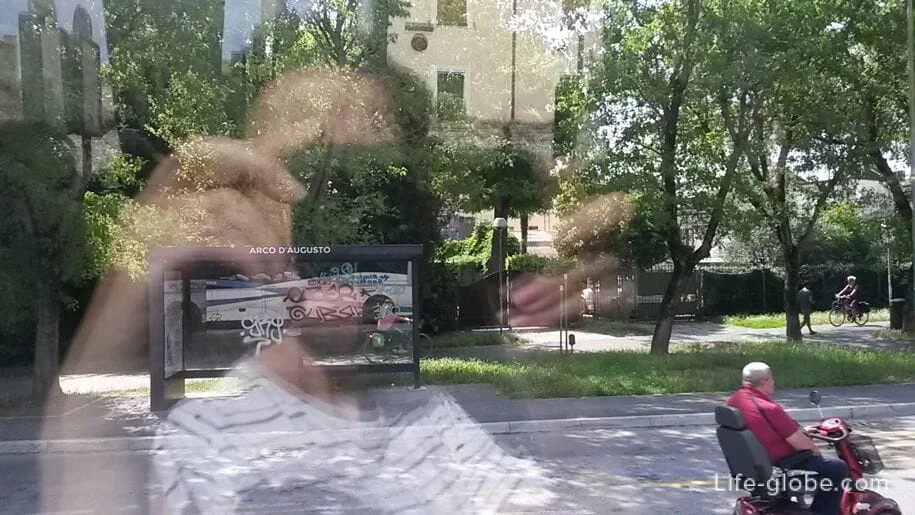 Третья (в зимний сезон – вторая) остановка автобусов – Arco D’Augusto на улице Largo Unità d’Italia.