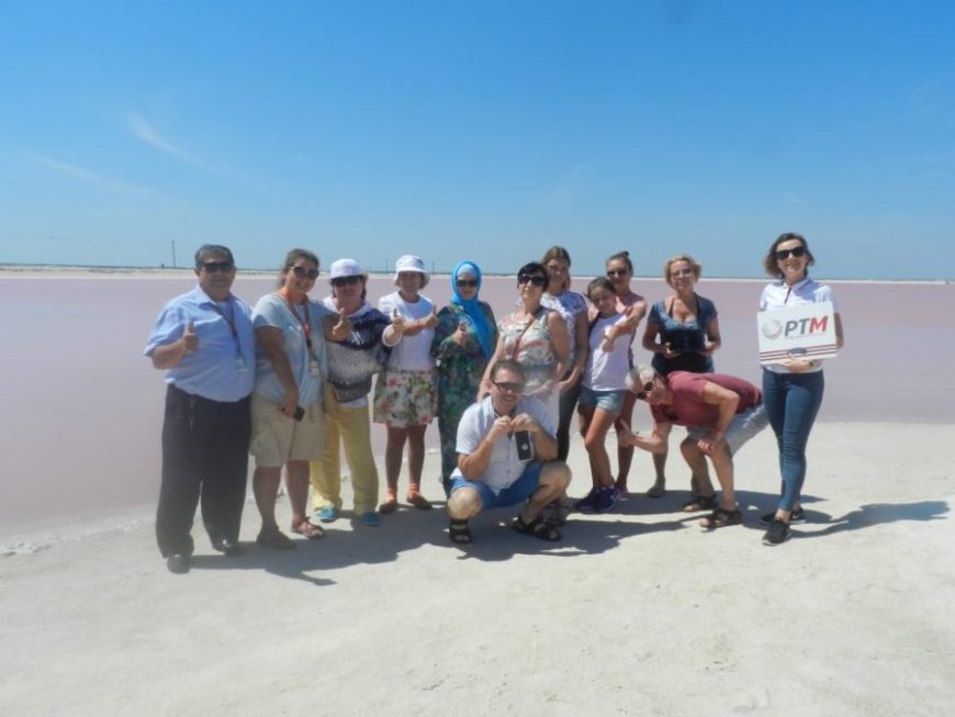 Вот таким мы увидели “розовое” озеро. Так что на закате приезжать смысла нет — оно становится бело-желтым. Приезжайте в ясный день с 12 до 15 часов — будет идеально.