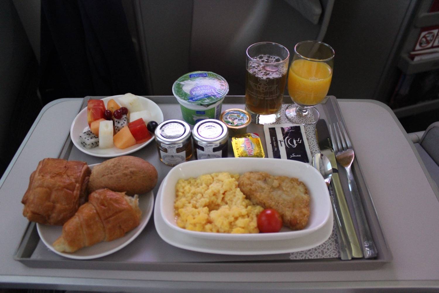 A selection of cheese, pastries and fresh fruit is provided to business passengers, who will receive their food served on fine porcelain china.