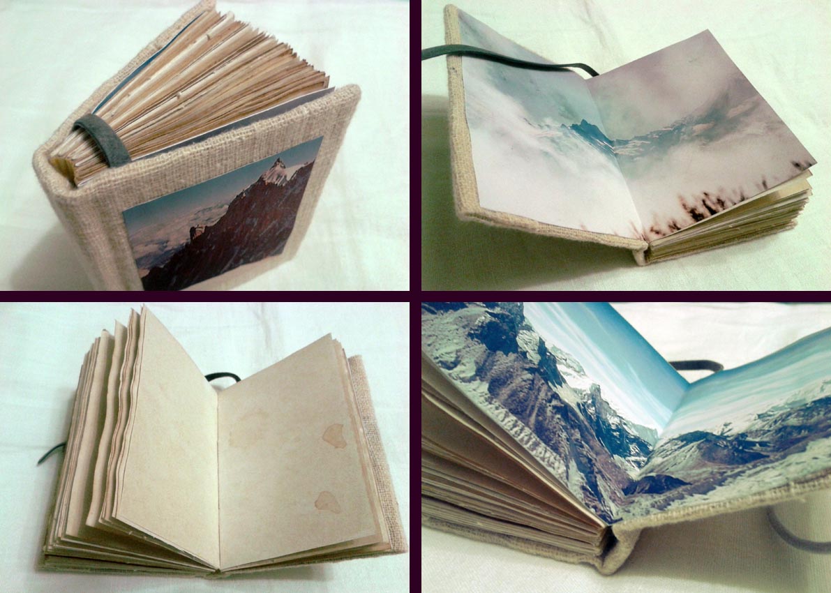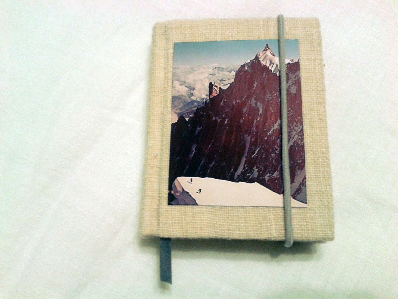 Твердый переплет. Обложка из ткани. Серая резинка. Состаренные листы с ароматом кофе. Очаровательные иллюстрации гор на обложке и форзацах. Ляссе из серой замши.