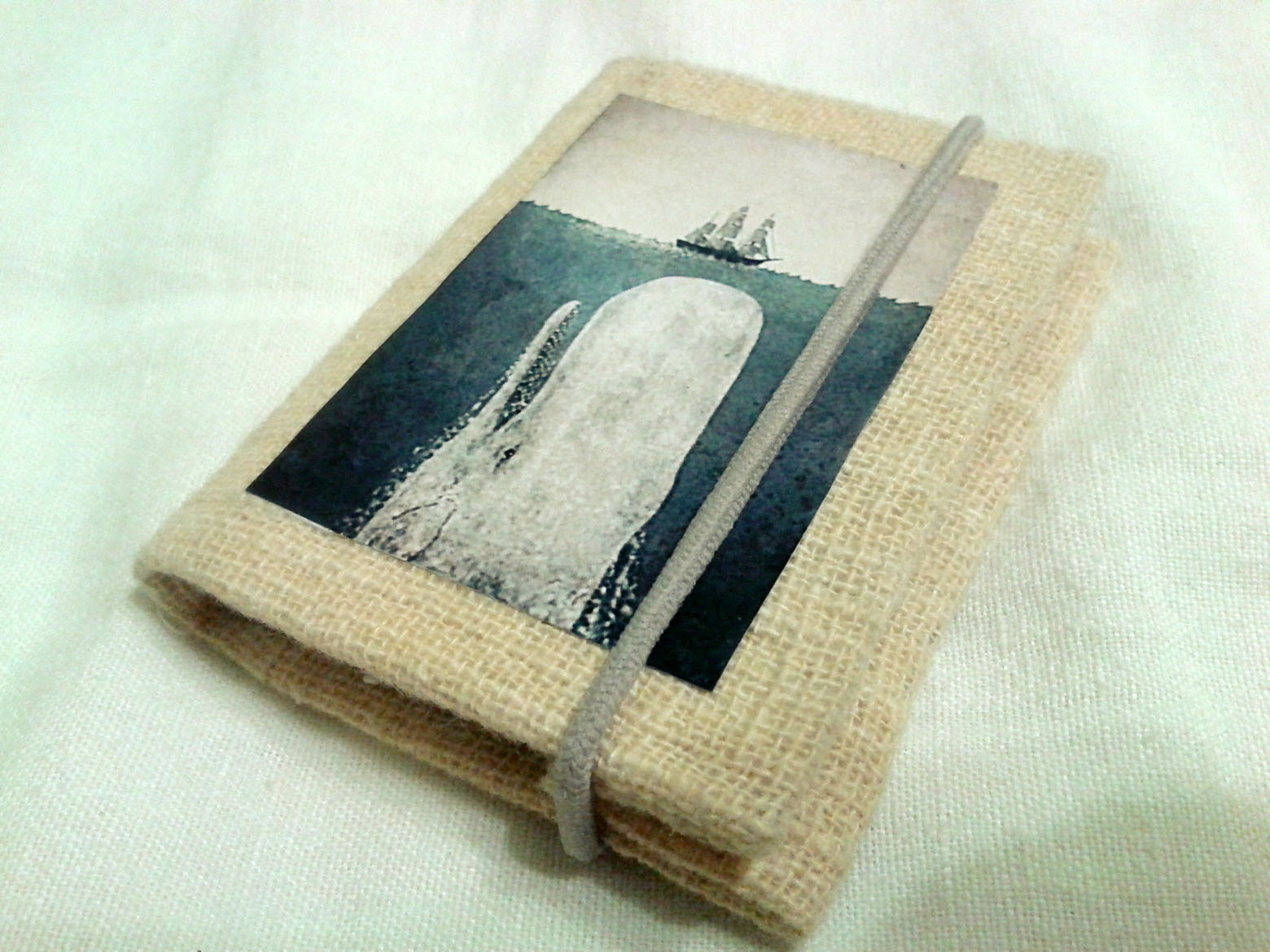 Обложка из ткани. Серая резинка-застежка. На обложке – иллюстрация с китом и корабликом. Внутри – форзацы из чудесной яркой и очень приятной на ощупь бархатной бумаги. Листы белые.