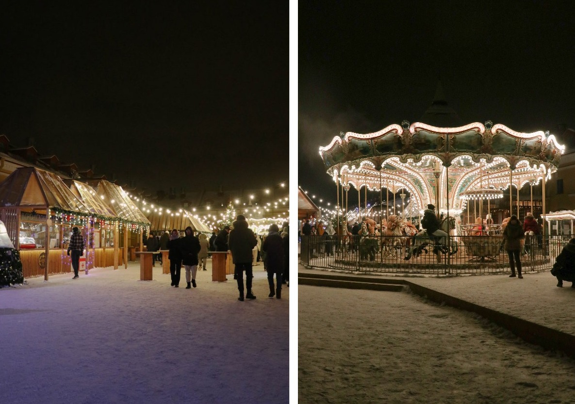 На ярмарке можно попробовать традиционные рождественские блюда и напитки и национальную кухню разных стран. Прокатиться на Венецианской карусели будет стоить 150 рублей, на Никольской горке — тоже 150 рублей. По выходным дням — 200 р.