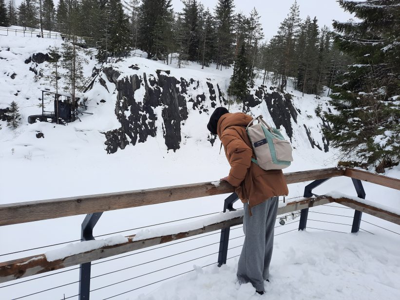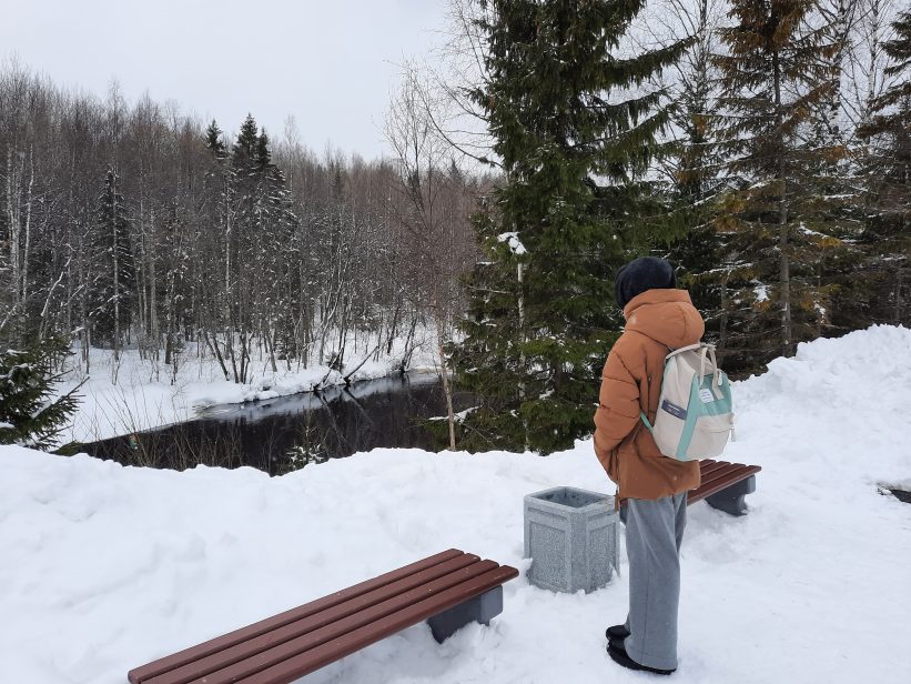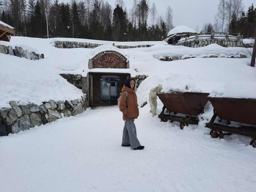 - Съездить на желтом “ПАЗ-ике” до Рускеальских водопадов, стоимость в одну сторону 50 рублей. Там можно походить по подвесным мостикам, зайти в домик совы и встретить Бабу-Ягу.