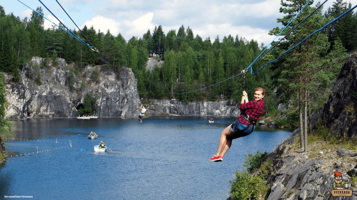 - зиплайнинг 1200 руб./чел – можно “пролететь” 400 метров на тросе над озером. Стоит дешевле, но даже поинтереснее будет.