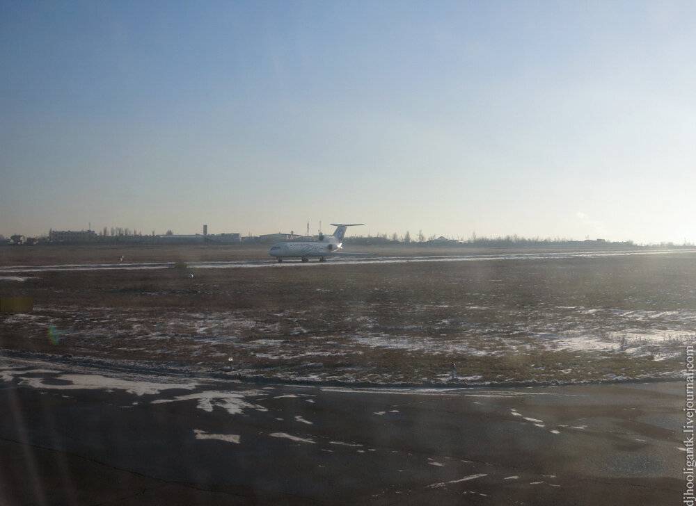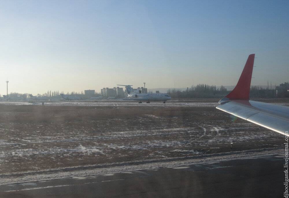 Мы доезжаем до разворотного кармана взлётно-посадочной полосы, разворачиваемся и едем снова на её начало, взлетать. Пассажиры, летящие в Москву ждут нас и смотрят через иллюминаторы на необычный самолёт.