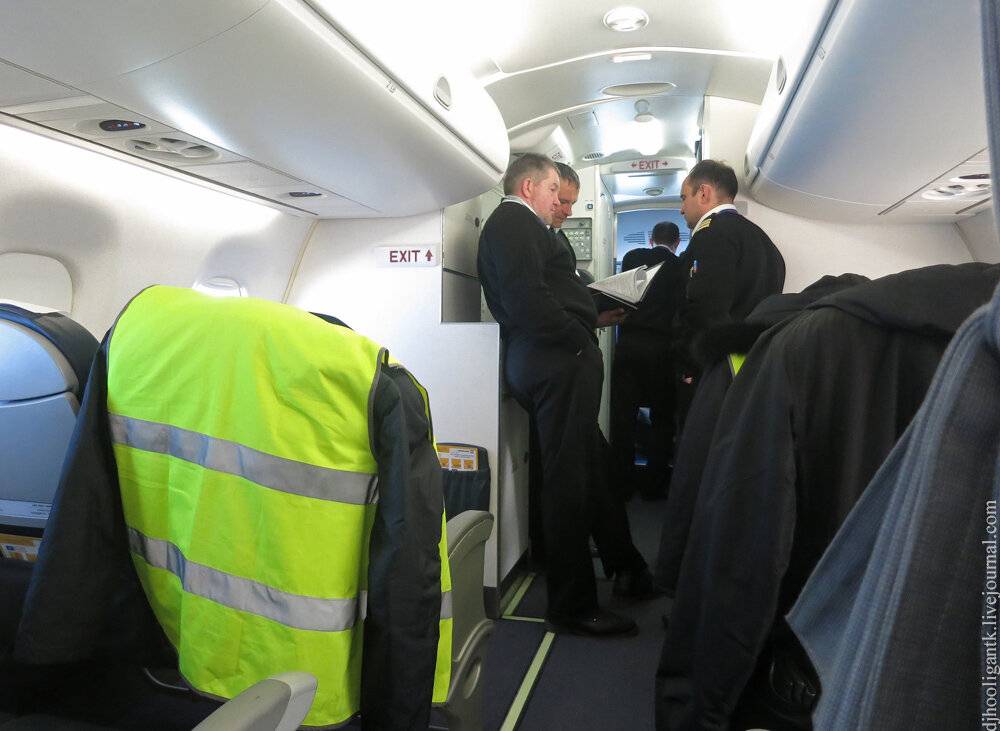 Кстати заодно и приметил некоторые полезные мелочи. Это если будете покупать билет на Эмбраер. Самые шумные места в салоне находятся чуть дальше середины. Больше всего пространства посидеть у мест 2AC (это в так называемом комфорт-классе, или правильнее евробизнес). Укачивает больше в хвосте. Лучшие виды в окно – в первых рядах, но и в самых последних тоже неплохо.Но давайте всё же проберёмся в кабину пилотов.